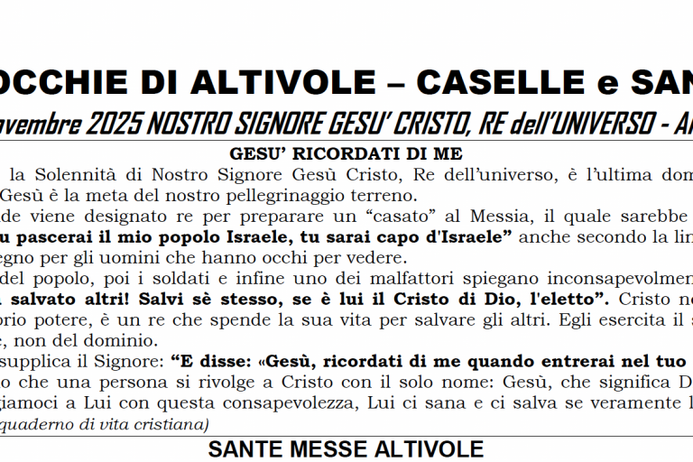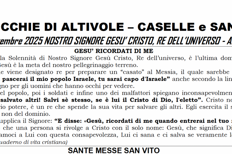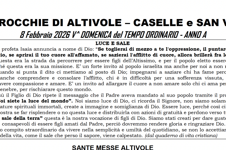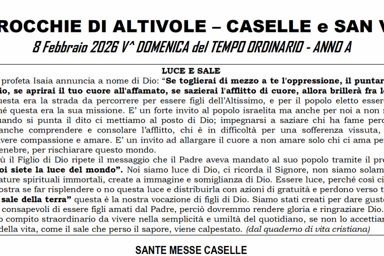 N.B. La celebrazione della Messa feriale è sospesa nelle Parrocchie di Altivole e Caselle qualora vi sia un funerale.