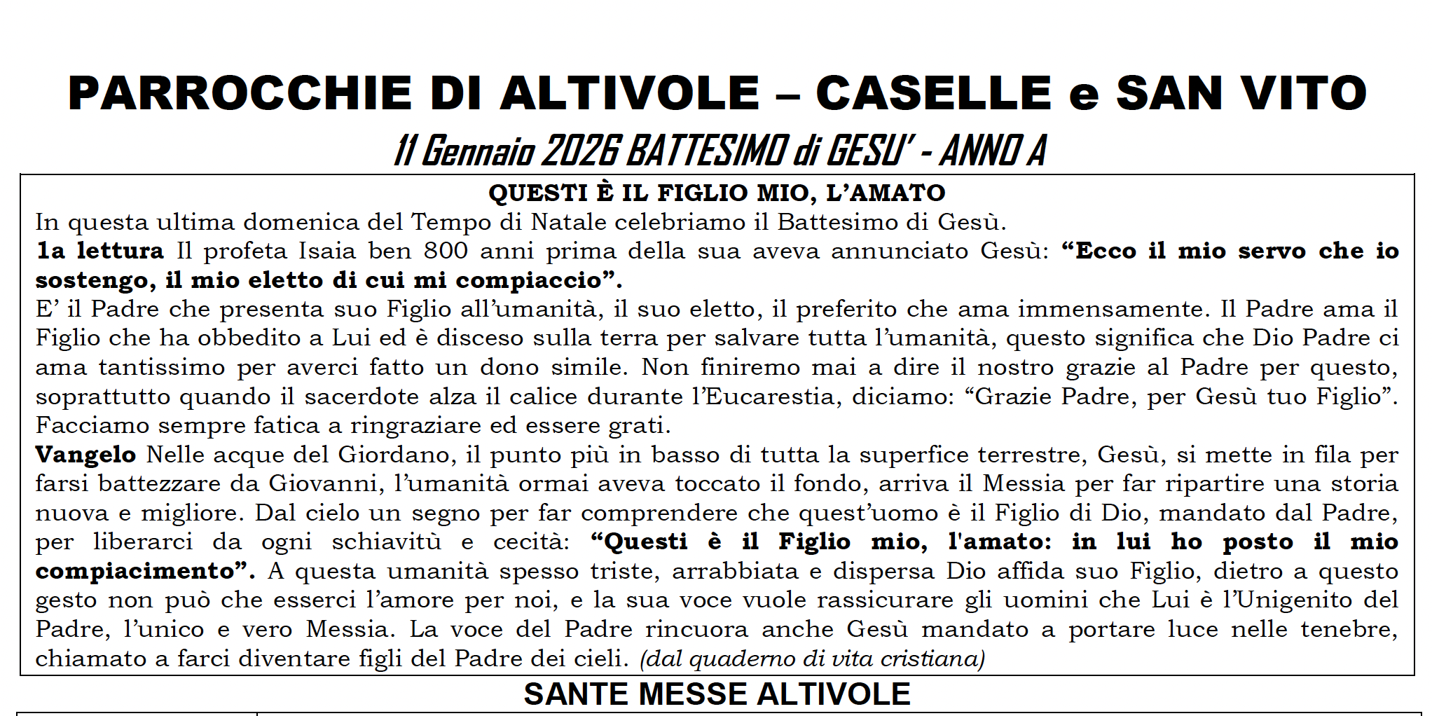 PrecedentePost precedente:11 Gennaio 2026 – Parrocchia di CaselleSuccessivoProssimo post:18 Gennaio – Parrocchia di San Vito