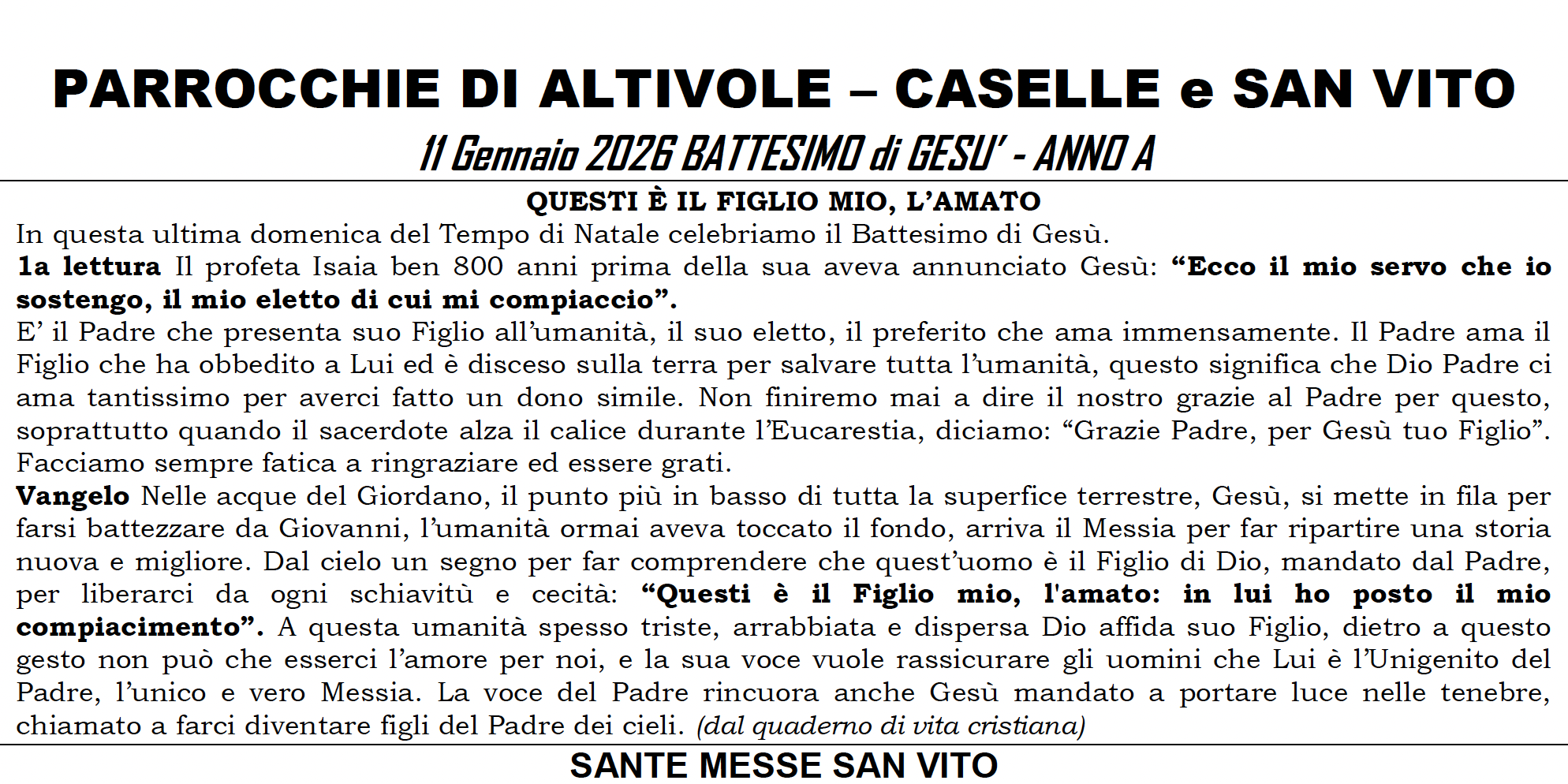 PrecedentePost precedente:Festa dell’Epifania: Benedizione dei bambini a San VitoSuccessivoProssimo post:11 Gennaio 2026 – Parrocchia di Caselle