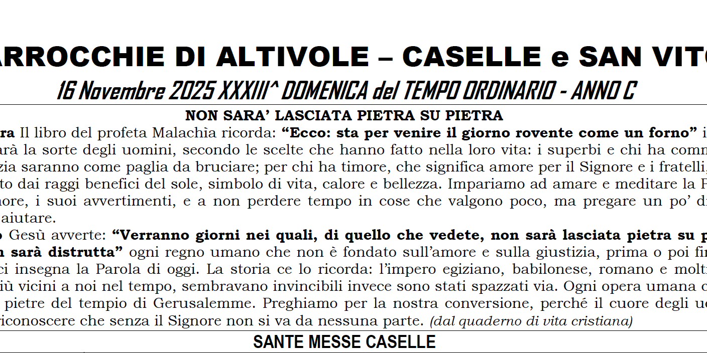 Nov172025CaselleFoglietti Caselle Apri il foglietto XXXIII T.O. Categorie: Caselle, Foglietti Caselle17 Novembre 2025Naviga tra i postPrecedentePost precedente:16 Novembre – Parrocchia di San VitoSuccessivoProssimo post:16 Novembre – Parrocchia di Altivole