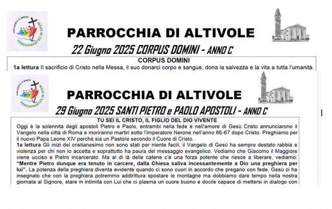 Apri il foglietto Corpus Domini e SS Pietro e Paolo Altivole