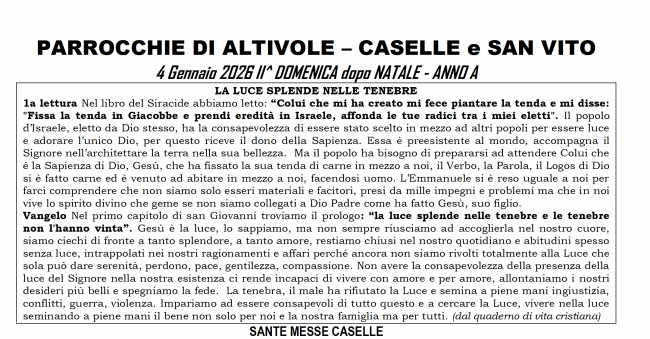 4 Gennaio 26 – Parrocchia di Altivole Altivole, Foglietti AltivoleDi Valentina Vise5 Gennaio 2026Apri il foglietto II Dom dopo Natale A