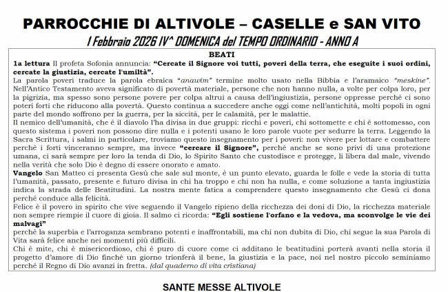 1 Febbraio – Parrocchia di Altivole Altivole, Foglietti AltivoleDi Valentina Vise1 Febbraio 2026Apri il foglietto IV Dom TO A