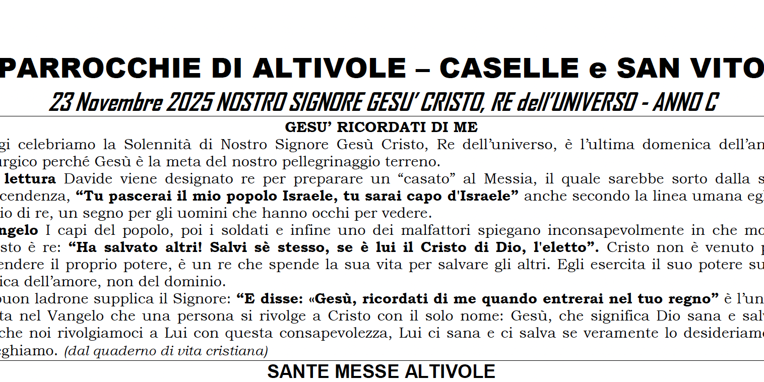 Nov242025AltivoleFoglietti Altivole Apri il foglietto CRISTO RE A Categorie: Altivole, Foglietti Altivole24 Novembre 2025Naviga tra i postPrecedentePost precedente:23 Novembre – Parrocchia di CaselleSuccessivoProssimo post:Avvento 2025: accendiamo la speranza