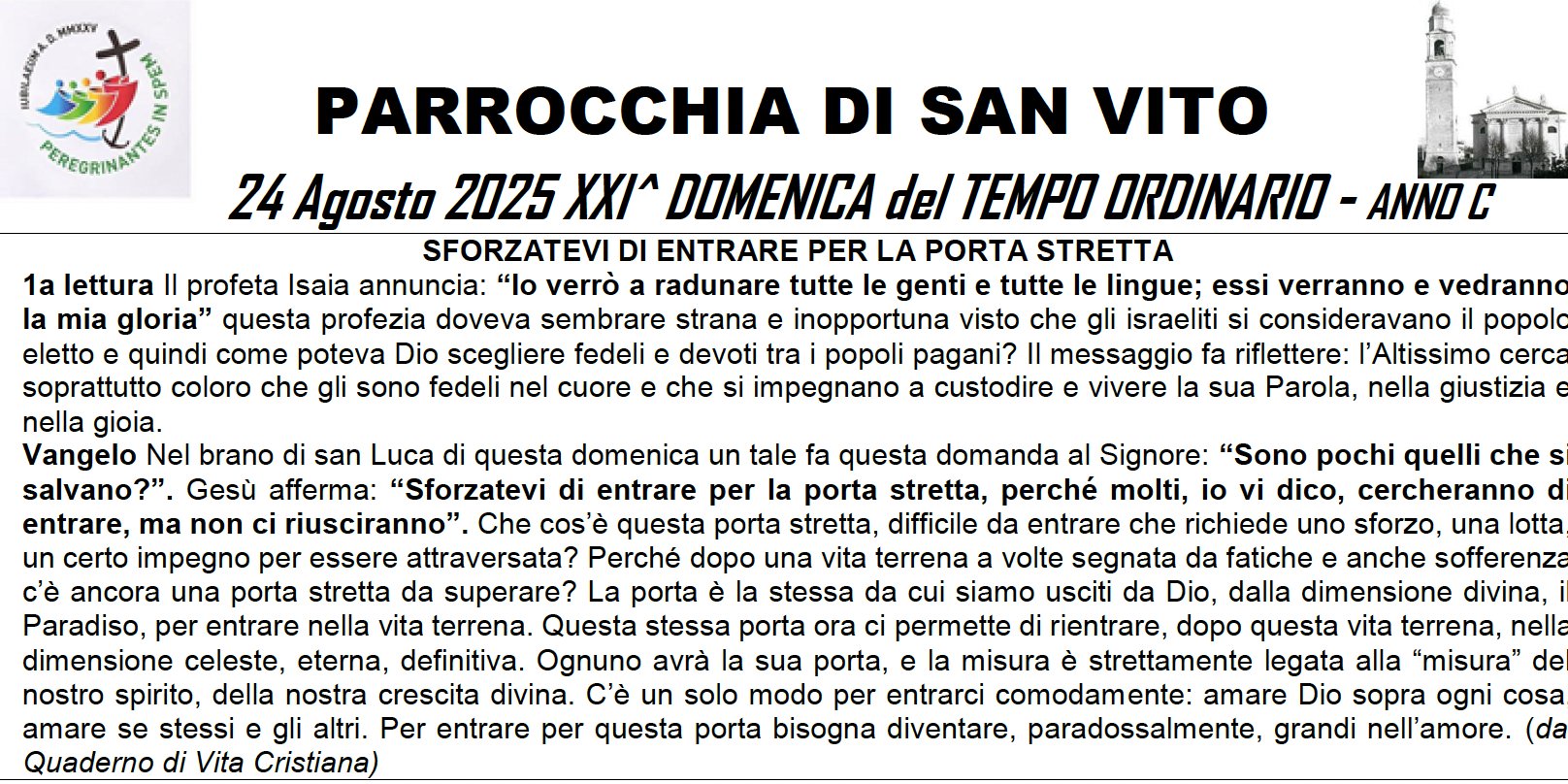 Ago292025Foglietti San VitoSan VitoUncategorized Apri il foglietto XXI e XXII TO Categorie: Foglietti San Vito, San Vito, Uncategorized29 Agosto 2025Naviga tra i postPrecedentePost precedente:10 e 17 Agosto – Parrocchia di AltivoleSuccessivoProssimo post:24 e 31 Agosto – Parrocchia di Caselle