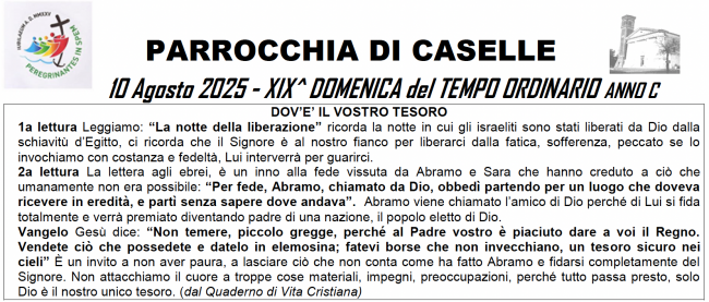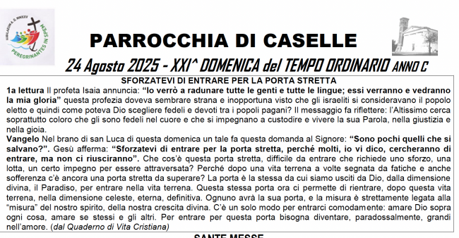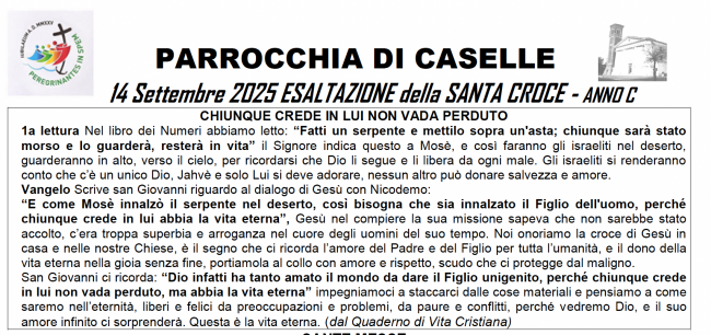 LUNEDI’ 29 SETTEMBRE è la FESTA DEL nostro PATRONO SAN MICHELE ARCANGELO: bambini, ragazzi, giovanissimi e tutta la comunità di Caselle è invitata all’apertura dell’anno pastorale. La Santa Messa, alle ore 19:30, sarà presieduta Don Roberto De Nardin, parroco di Forni di Zoldo, che ospita i campiscuola delle nostre parrocchie. Seguirà un momento di festa…