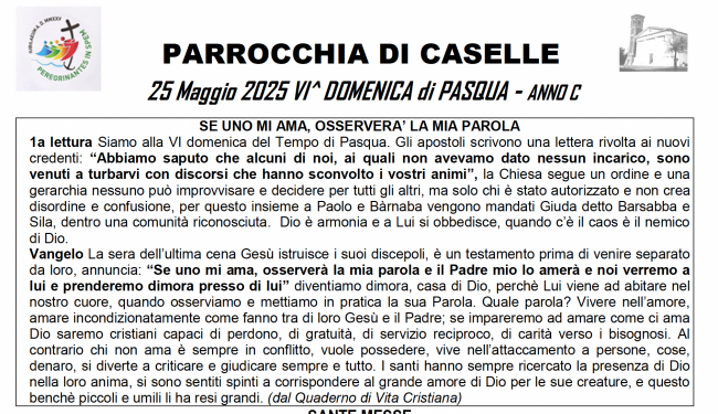 Scarica il foglietto VI^ DOMENICA di Pasqua c