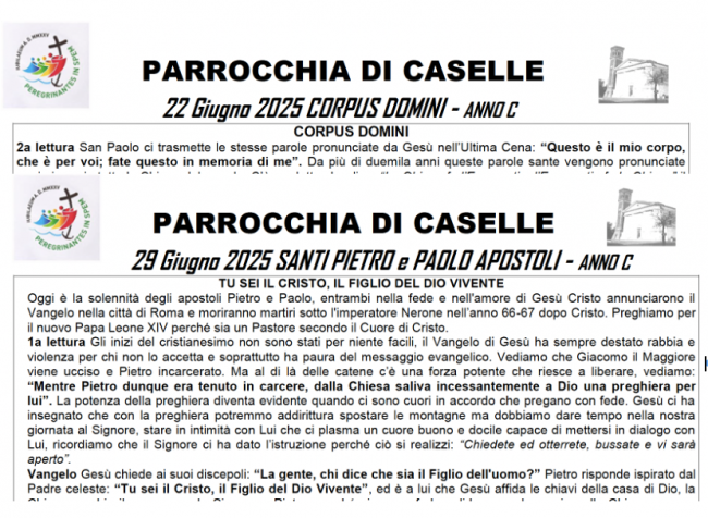 Apri il foglietto Corpus Domini e SS Pietro e Paolo Caselle