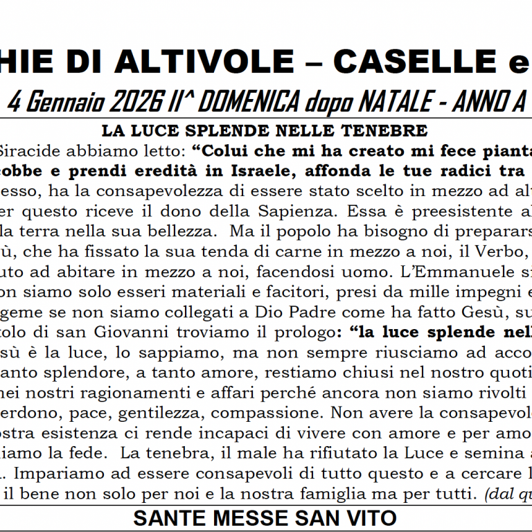 4 Gennaio 26 – Parrocchia di San Vito Foglietti San Vito, San Vito5 Gennaio 2026 Apri il foglietto II Dom dopo Natale SV Leggi...