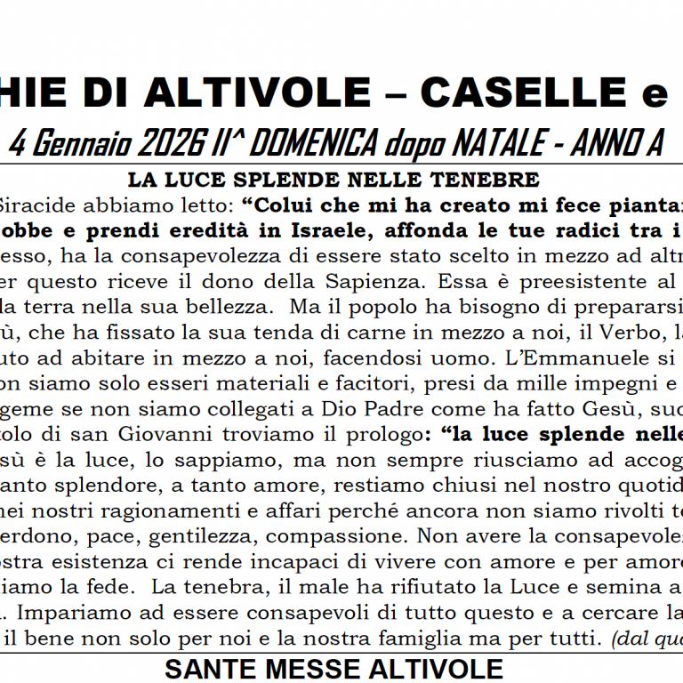 4 Gennaio 26 – Parrocchia di Altivole Altivole, Foglietti Altivole5 Gennaio 2026 Apri il foglietto II Dom dopo Natale A Leggi...