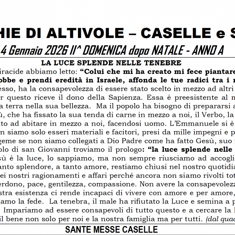 4 Gennaio 26 – Parrocchia di Caselle Caselle, Foglietti Caselle5 Gennaio 2026 Apri il foglietto II Dom dopo Natale C Leggi...