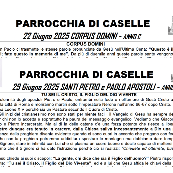 Apri il foglietto Corpus Domini e SS Pietro e Paolo Caselle