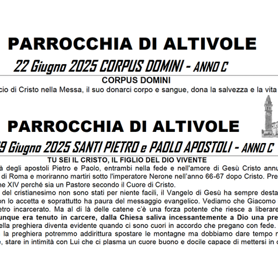 Apri il foglietto Corpus Domini e SS Pietro e Paolo  Altivole