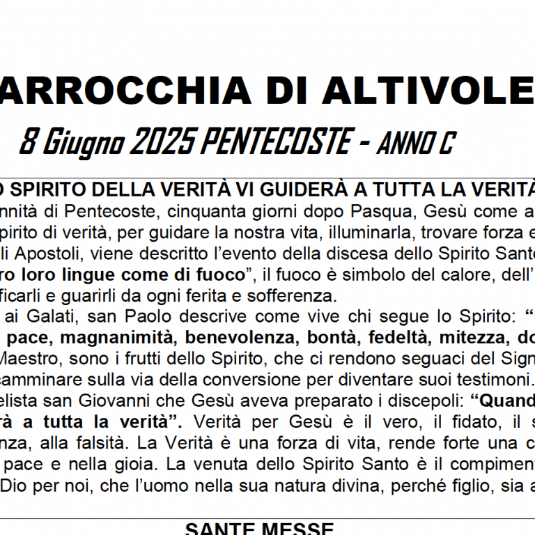 8 Giugno 2025 – Parrocchia di Altivole Altivole, Foglietti Altivole9 Giugno 2025 Scarica il foglietto Pentecoste Leggi...