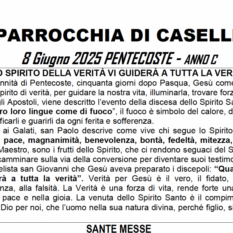 8 Giugno 2025 – Parrocchia di Caselle Caselle, Foglietti Caselle9 Giugno 2025 Scarica il foglietto Pentecoste – C Leggi...