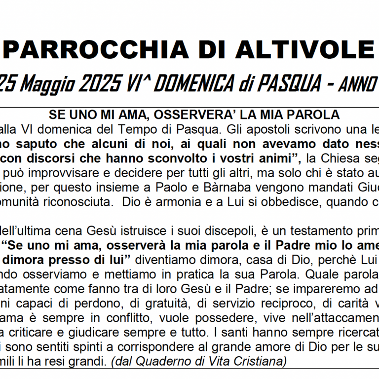 Scarica il foglietto VI^ DOMENICA di Pasqua c