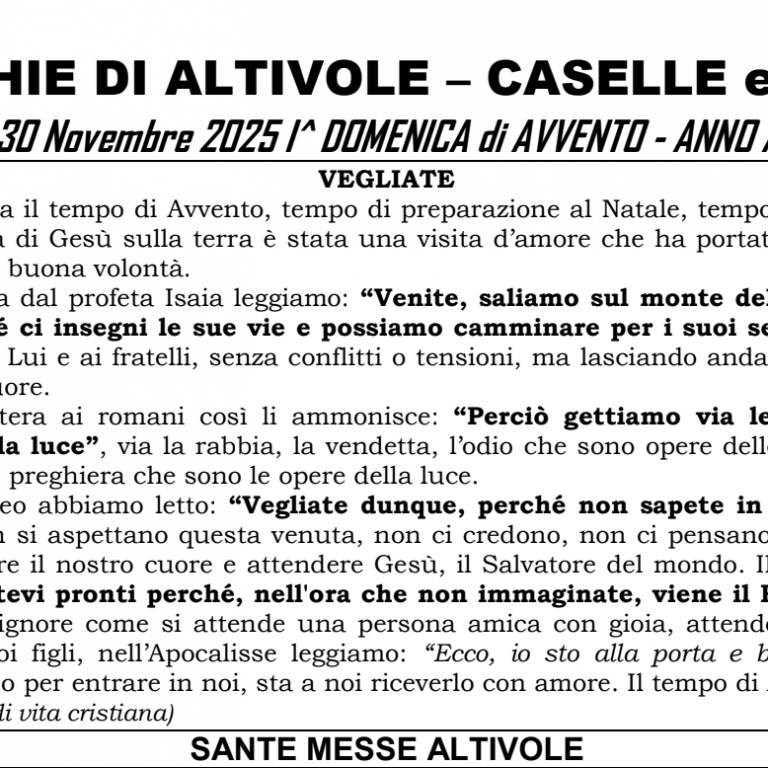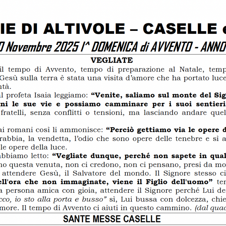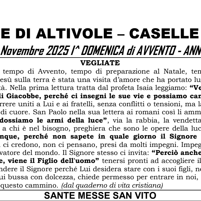 Altivole, Caselle, News, San Vito1 Dicembre 2025