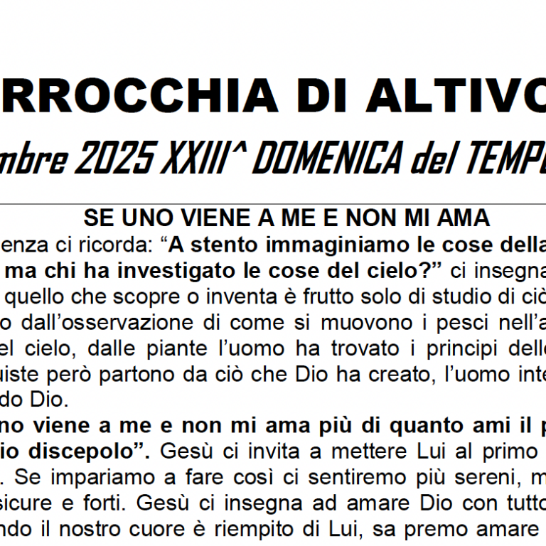 Domenica 28 settembre le sette comunità di Altivole e Riese vivranno insieme un importante momento di fede e…
